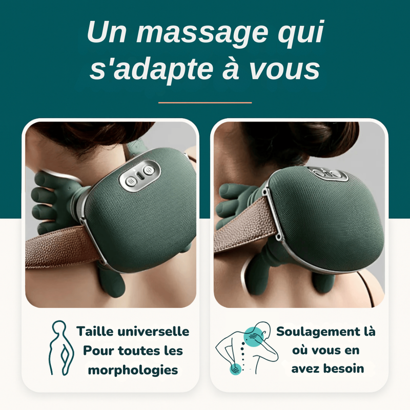 Le masseur simule de vraies mains avec 4 doigts pour le cou et un pouce pour les muscles trapèzes. Il pétrit et soulage les tensions tout en offrant un massage relaxant.